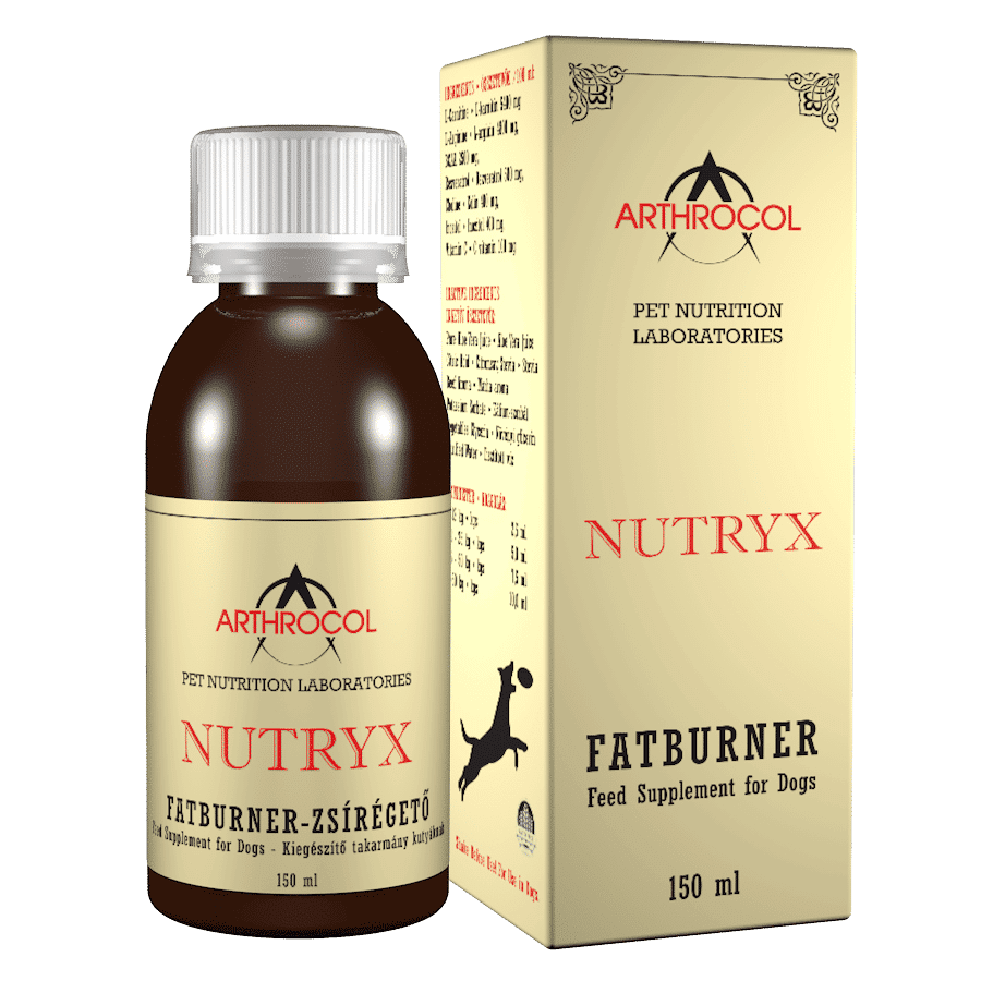 Az Arthrocol Nutryx egy passzív zsírégető hatású, gyorsan felszívódó étrendkiegészítő folyadék elsősorban túlsúllyal küzdő kutyák számára, ami egy megnövelt hatóanyag tartalmú aminosav-keverék. Összetevői gátolják a zsírok lerakódását, segítik a szervezet hatékony energiafelhasználását az izomzat megőrzése és fejlesztése mellett. A Nutryx nem csak fogyasztásra alkalmas, hanem hasznos tápkiegészítője lehet sport- és munkakutyák számára is. Jótékony hatással van a szív- és érrendszerre, és segíthet a társállat általános kondíciójának visszanyerésében, növelésében.